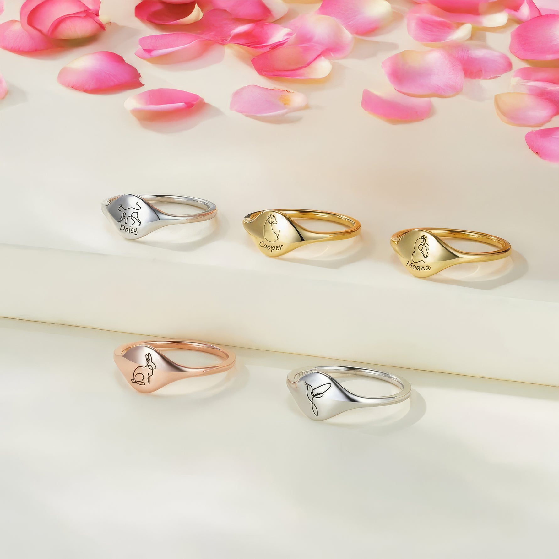 Celebrate your favourite animal with this elegant signet ring, featuring a delicate line drawing and your engraved name. The perfect personalised gift for animal lovers, this ring is a beautiful reminder of your special bond.