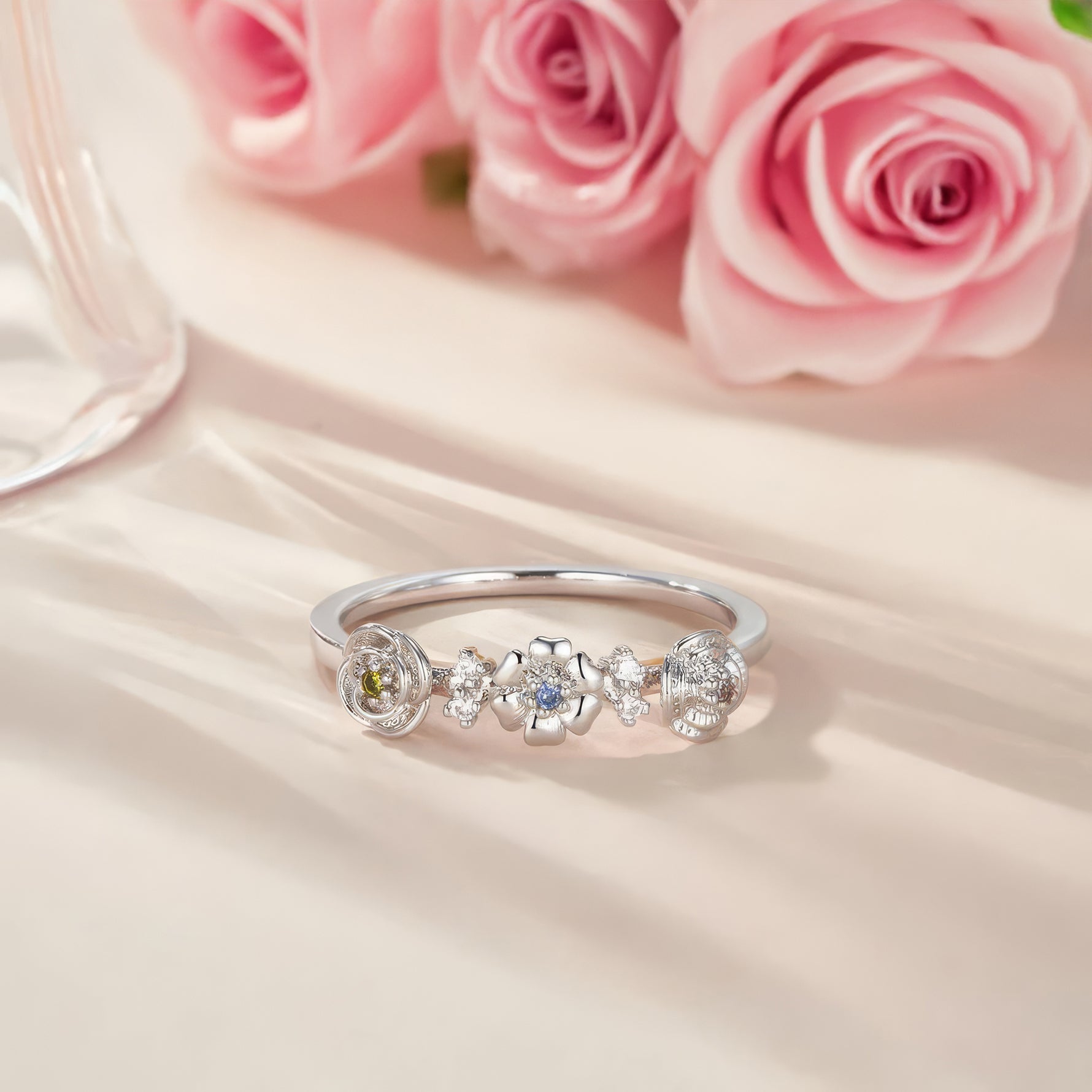 Celebrate life's special moments with our stunning Flower Birthstone Ring, featuring your choice of 2 or 3 birth flowers delicately crafted in sterling silver with a matching birthstone at its centre. This personalised piece combines vintage charm with modern elegance, perfect for gifting or treating yourself to something uniquely meaningful.