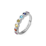 Transform your look and expand your aura with the Rainbow Crystal Ring. This sparkling row of vibrant gems is a unique statement piece that will have everyone mesmerised. Plus, these 7 hues correspond to chakra energy points for beauty, transformation, and enlightenment like you've never experienced before!