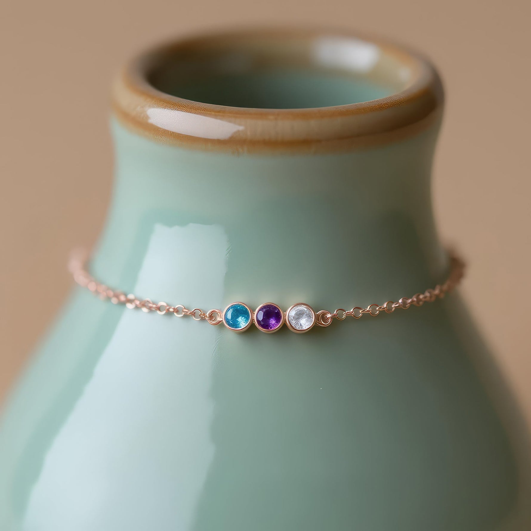 Celebrate the meaningful relationships in your life with this beautifully crafted Birthstone Bracelet. Each piece can be personalized with up to ten custom birthstones, making it a cherished keepsake for years to come. Show your loved ones how much they mean to you, one birthstone at a time.
