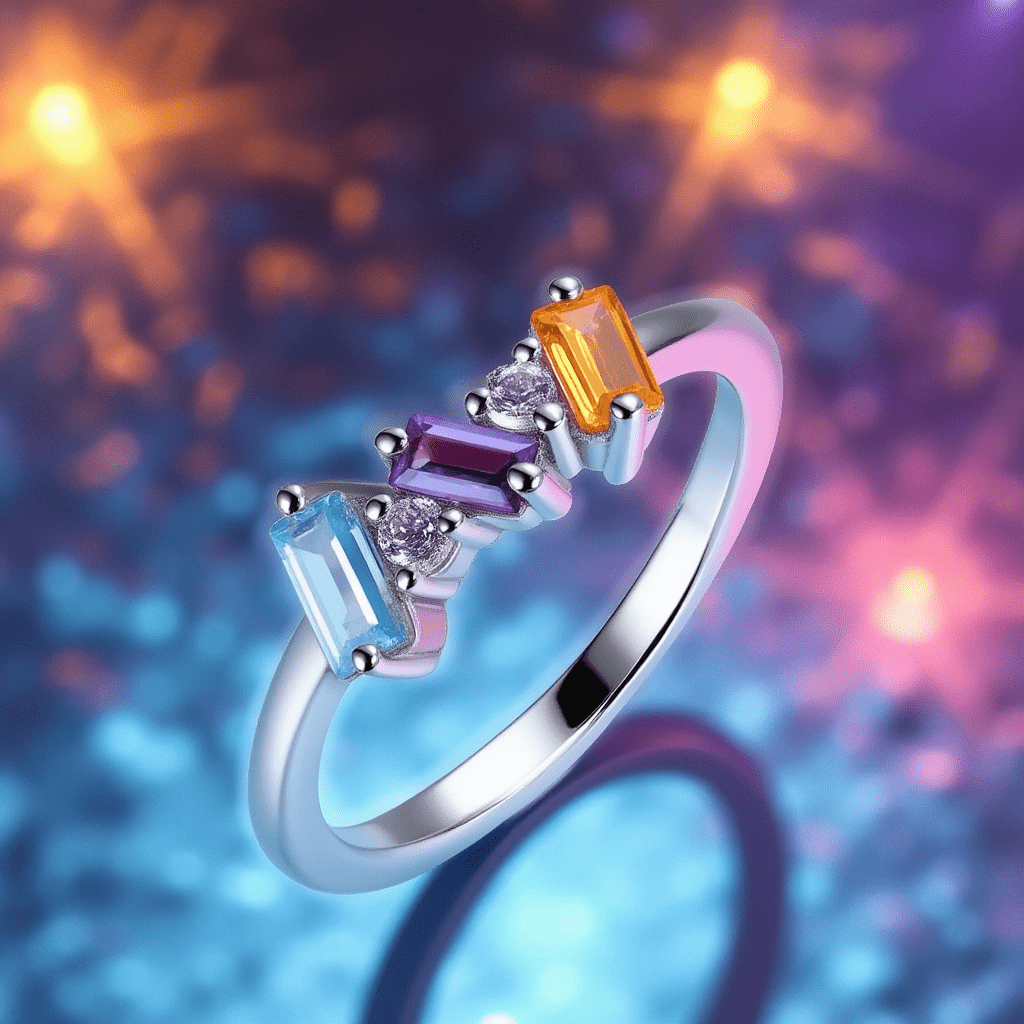 Celebrate your loved ones with our dazzling Baguette Birthstone Ring with Accents. Handpick sparkling birthstones that represent those who mean the most to you and customise it in solid 925 sterling silver with the option of 18K gold or rose gold plating.