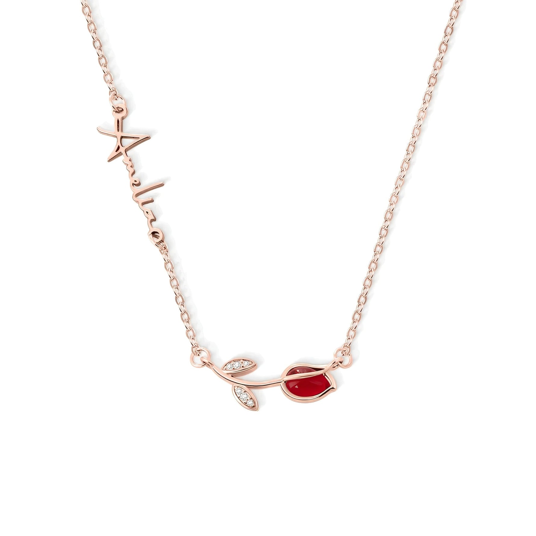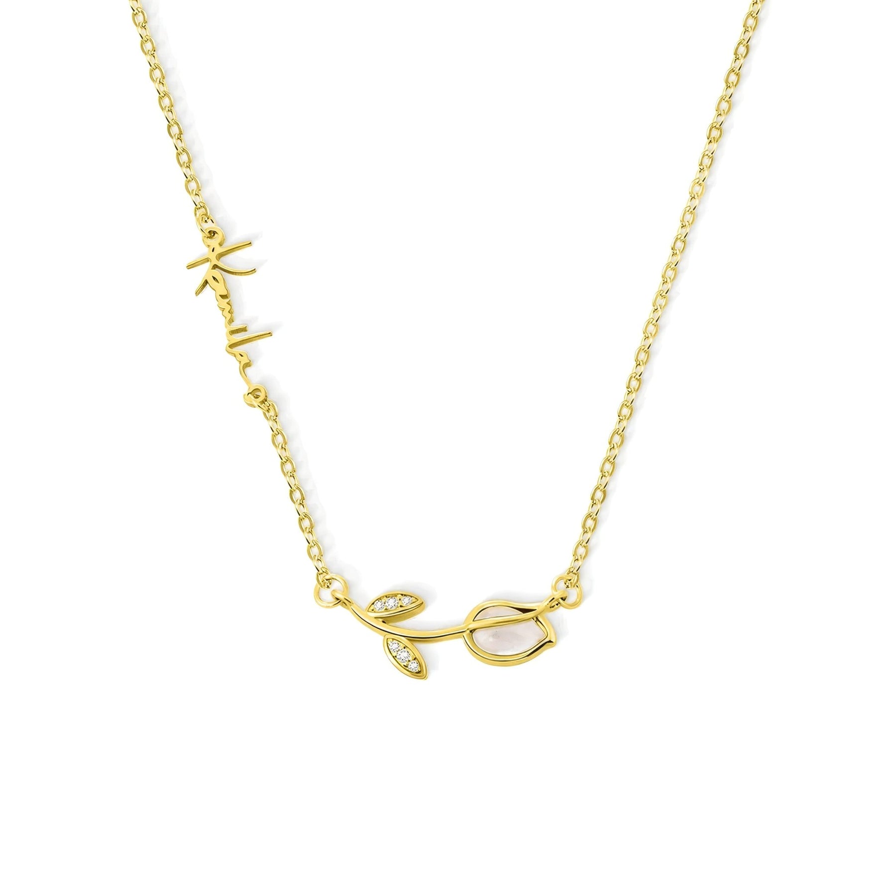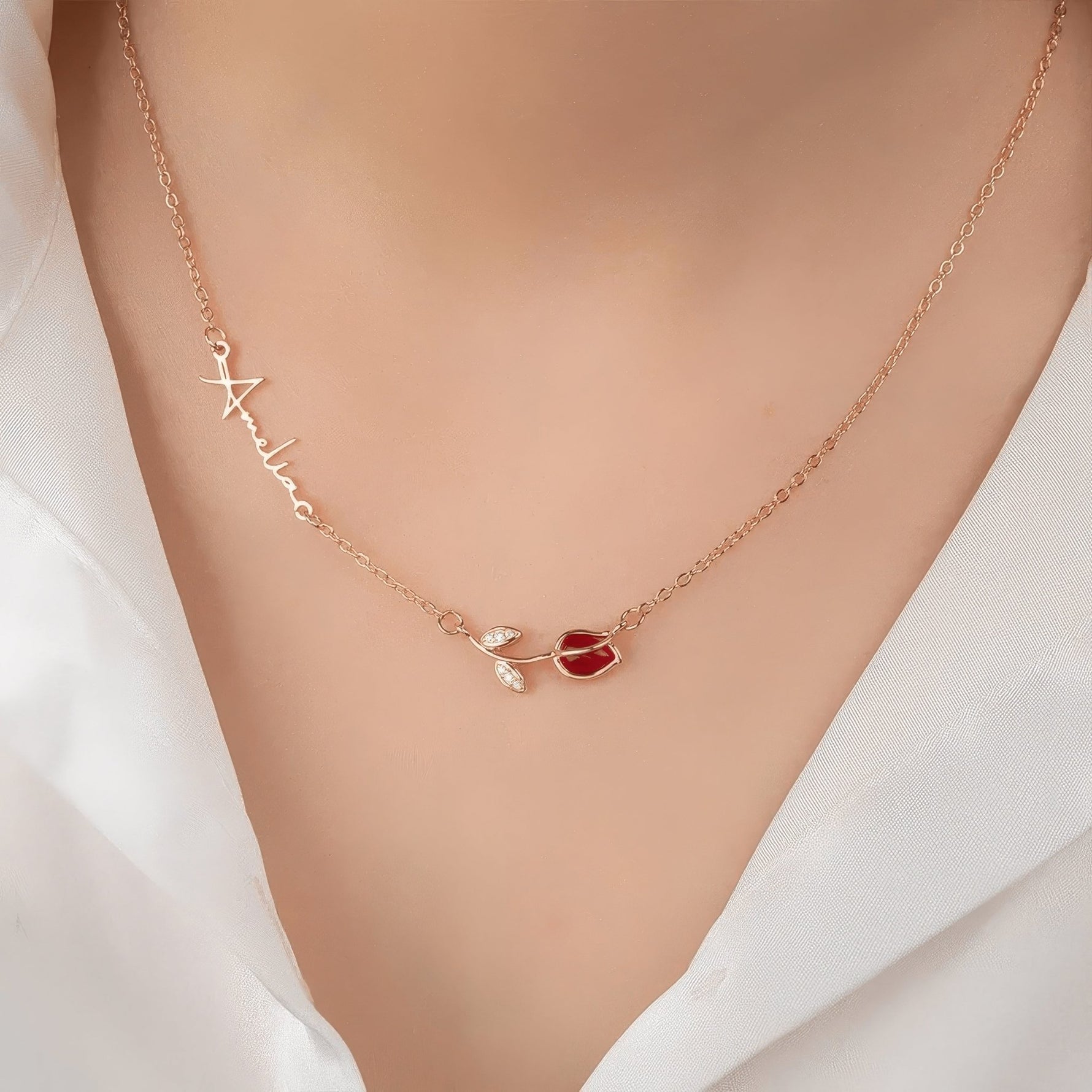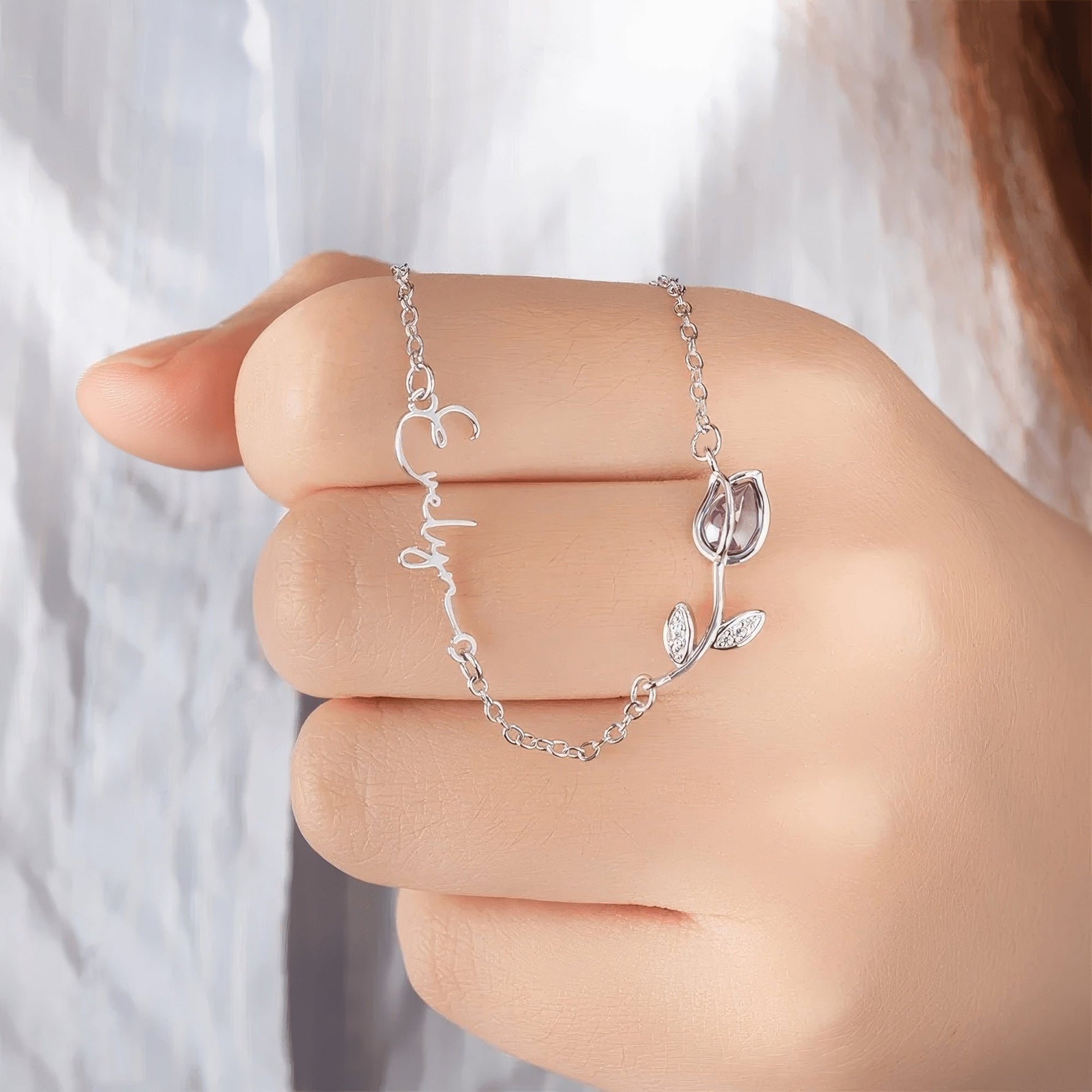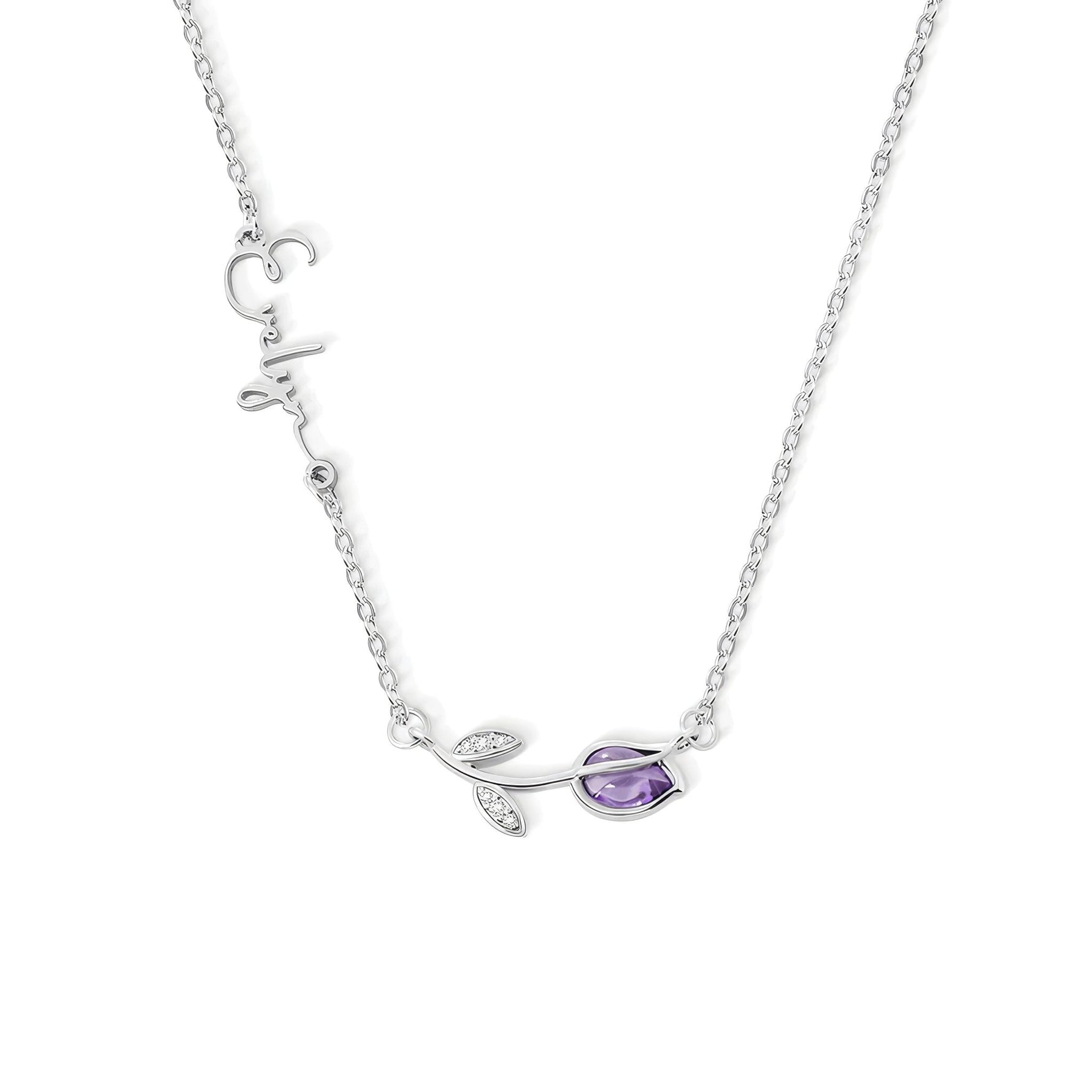 Personalise your sparkle with the Birthstone Tulip Necklace. This elegant piece features a stunning tulip design accented by your birthstone, blending timeless beauty with a unique personal touch.