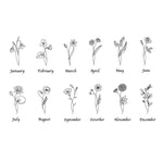 Personalise your Intertwined Birth Flower Tattoo Digital Design with a unique hand-drawn design featuring three names and their corresponding birth flowers. This special and meaningful tattoo can be truly yours.