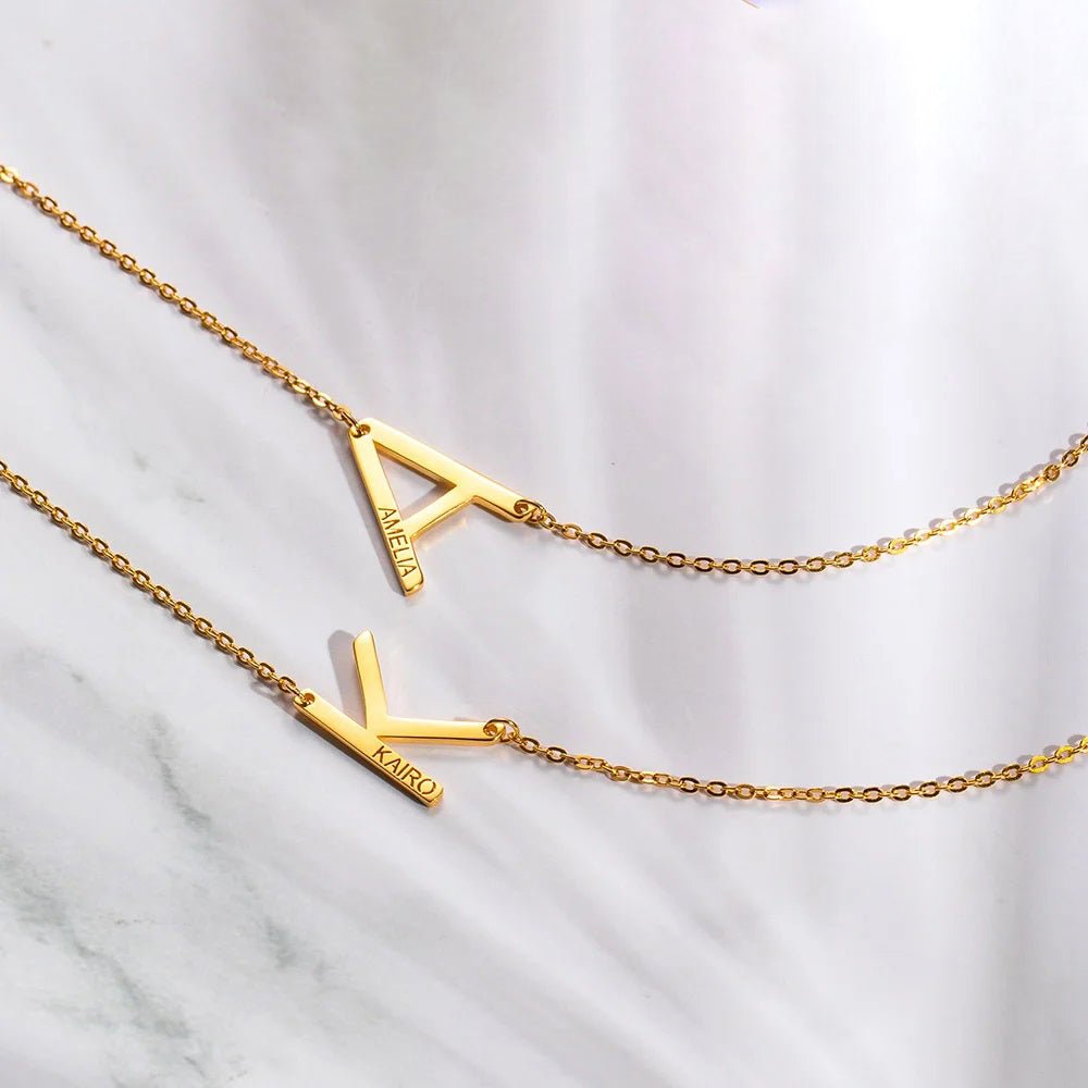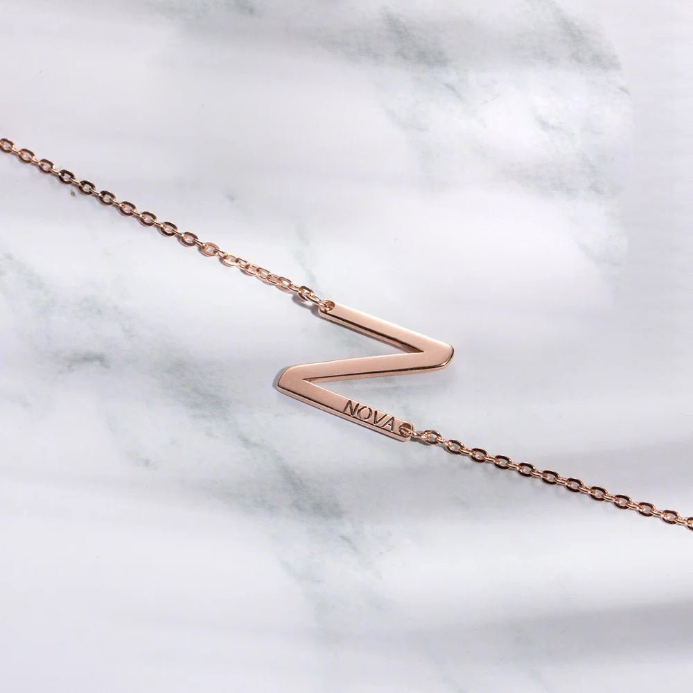 Looking for a unique way to express your personal style? Step away from the mundane and embrace the fresh, dynamic vibe of our Miniature Sideways Initial Necklace! Crafted with care using only the finest sterling silver, this necklace is fully customizable with your chosen inscription. Plus, we offer both gold and rose gold finishes to suit your individual taste. Don't settle for ordinary - make a statement with our Miniature Sideways Initial Necklace today!