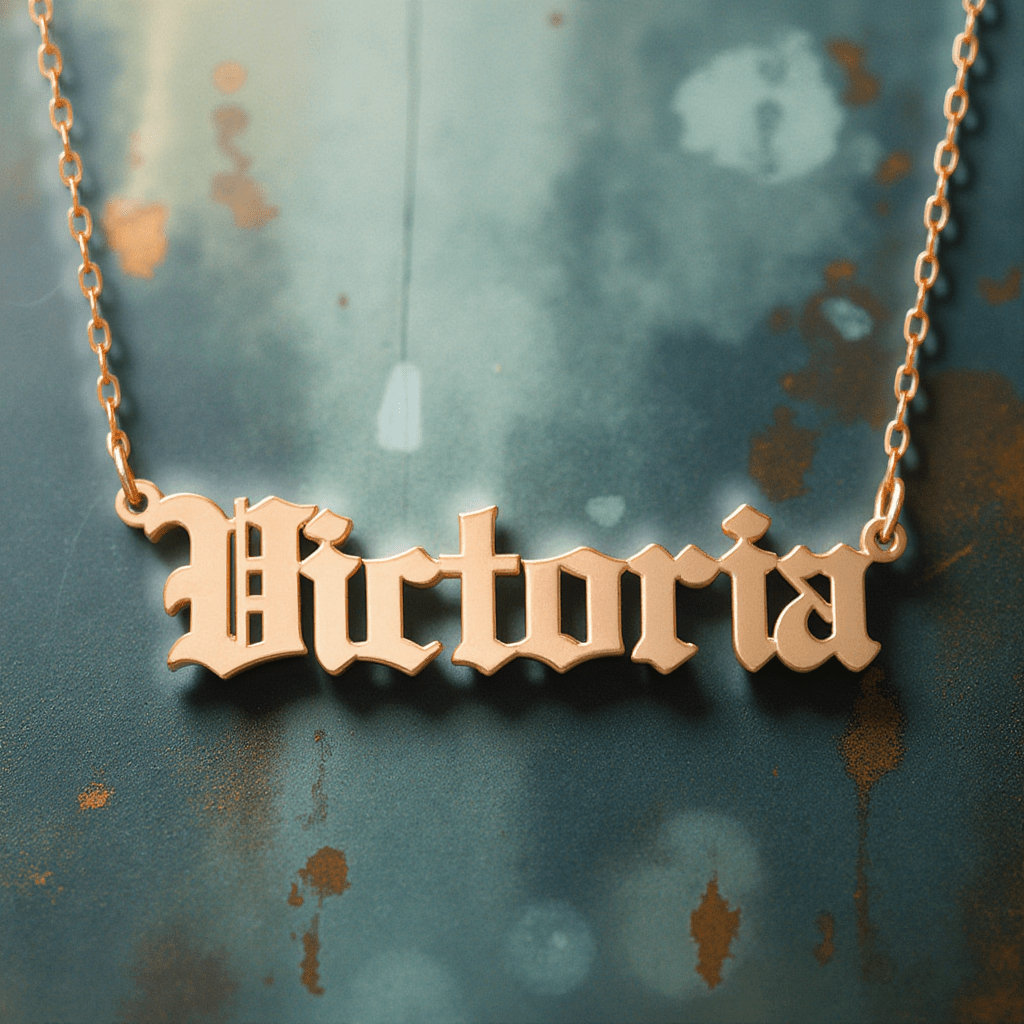 Make a statement with an exclusive, elegant piece that speaks to your unique style. Our Old English Style Name Necklace adds sophistication and class - customise it with any personal word or name for the perfect finishing touch!