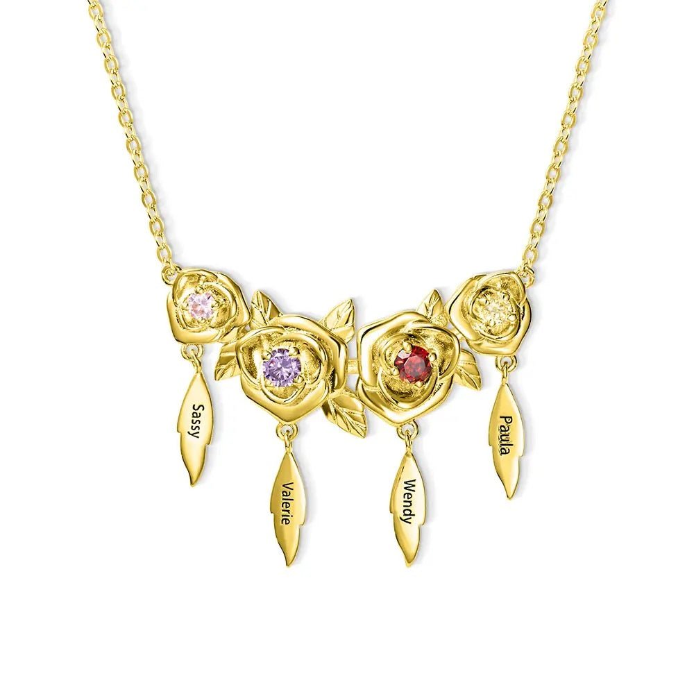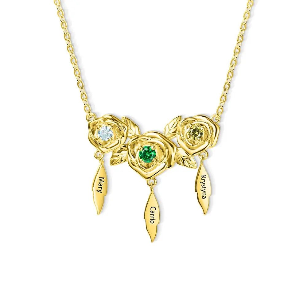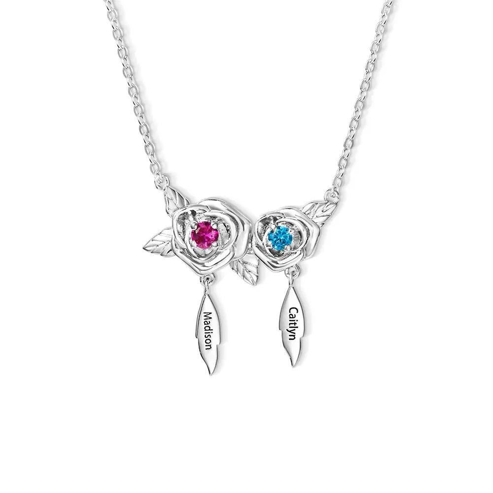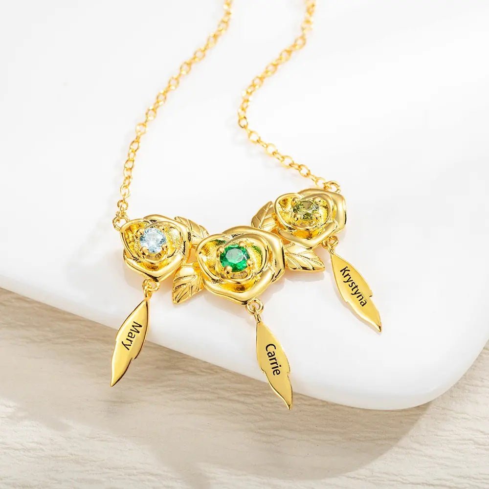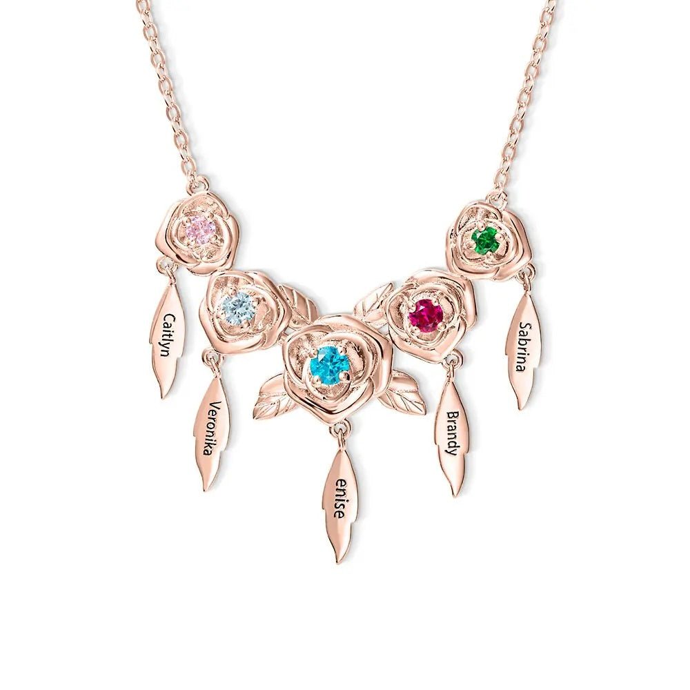 Transform your look with our Personalised Rose Pendant Necklace adorned with 1-5 beautifully crafted roses, each paired with a sparkling birthstone to represent love and family. Add a personalised touch with an engraved name and turn this exquisite necklace into a treasured memento, perfect for commemorating anniversaries, birthdays, and significant memories. This timeless and radiant piece captures elegance and sentimental bonds, making it the perfect gift for any special occasion.
