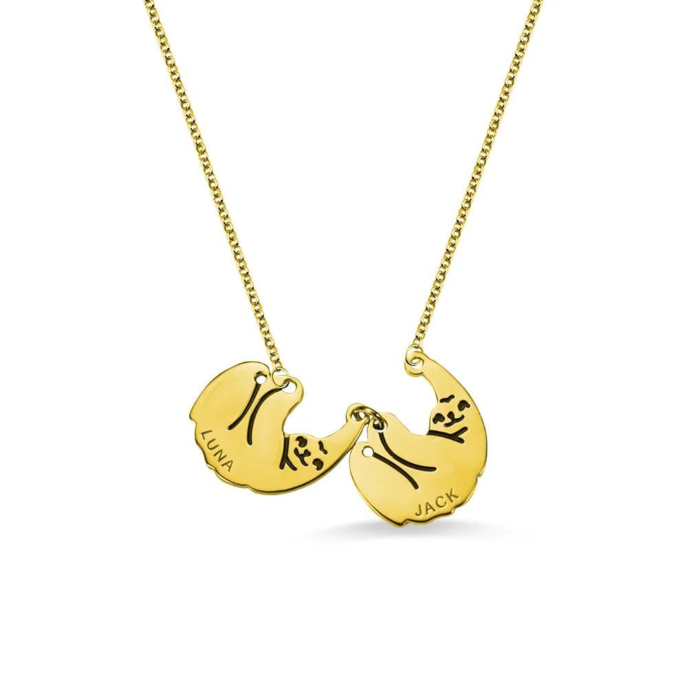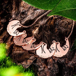 Experience the unbreakable bonds of family with the Sloth Family Necklace, a stunning piece of personalised jewellery showcasing up to five lovable sloths connected to one another. Ideal for sloth enthusiasts, this distinctive necklace allows you to personalise with names of your choice, creating a heartfelt gift that adds warmth to any occasion. Embrace the charm of the sloth necklace, serving as a joyful reminder to cherish every slow, sweet moment shared with your loved ones!