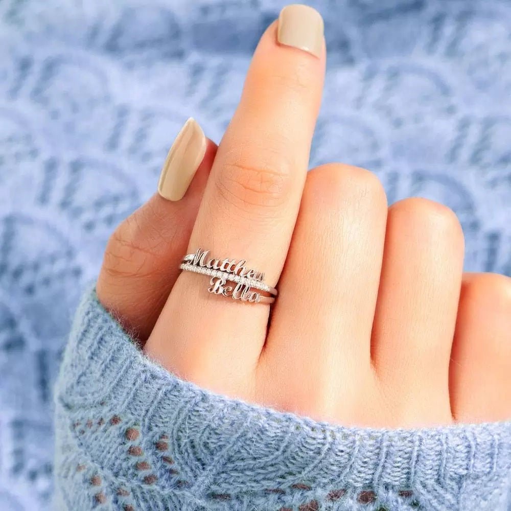 Experience true love and joy with our Sparkling Name Ring with 2–4 Names. Made with sterling silver and adorned with dazzling zirconia, this ring can be customized with up to four names, making it a cherished piece for a lifetime.
