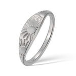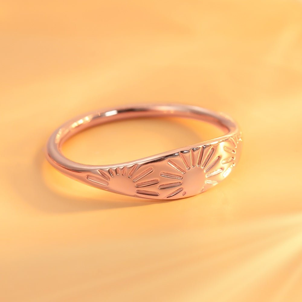 Ignite your inner fire and shine with the Sun Ring. Let its eye-catching sunbeam design be a symbol of life's balance, reminding you to focus on growth as well as hope and prosperity at all times. Feel the warmth of each sunny day knowing that this powerful piece will awaken within you sensations of accomplishment and strength.