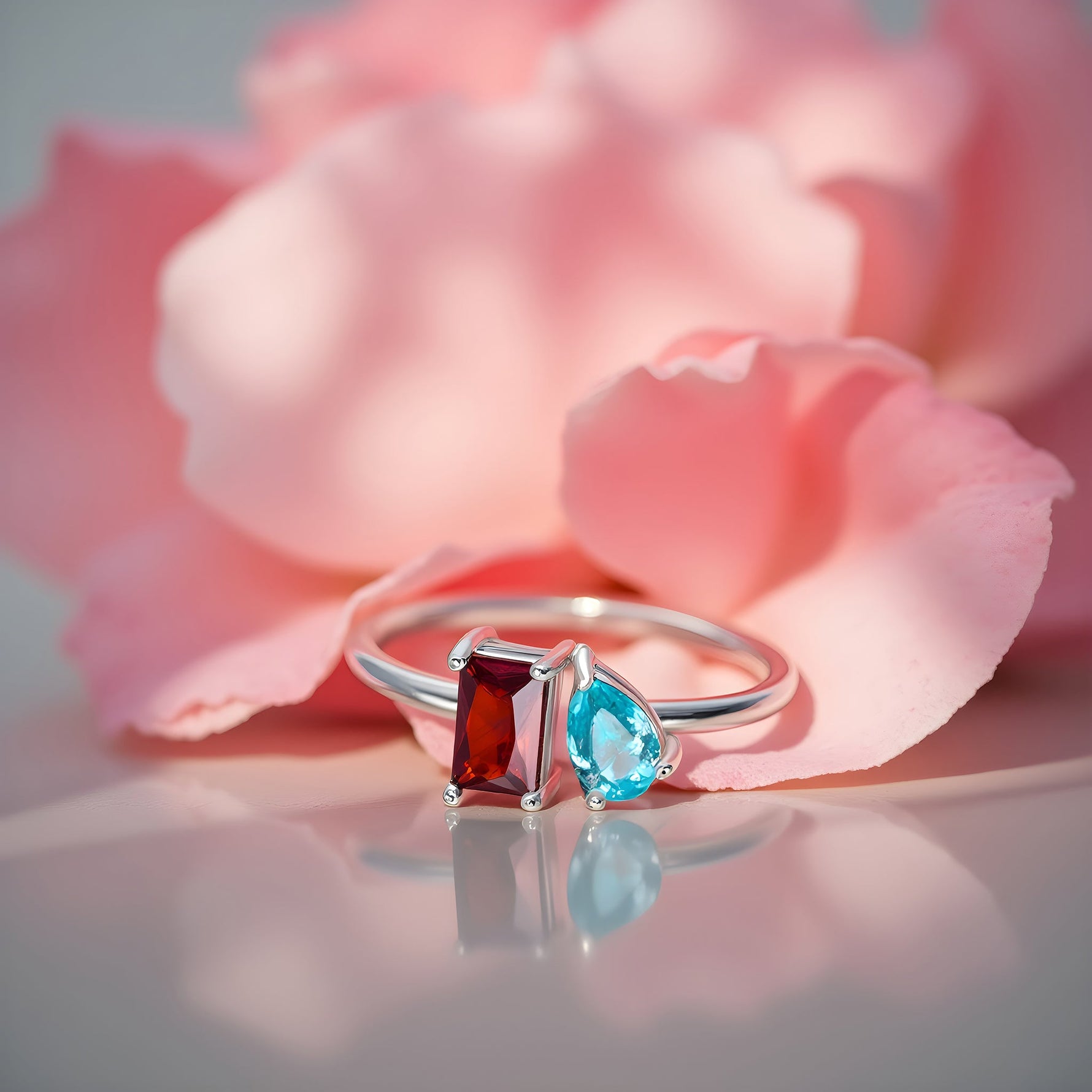 Celebrate love and connection with the Toi et Moi Birthstone Ring, featuring a stunning combination of emerald and pear-shaped stones. Perfectly customisable to represent your story, this timeless design adds a touch of sophistication to every moment.