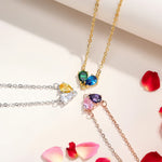 Celebrate your unique connection with the Toi et Moi Pear Birthstone Necklace, featuring two sparkling pear-shaped gemstones nestled together in a timeless heart-inspired design. Personalise it with birthstones that hold special meaning for you or your loved one, creating a truly heartfelt gift for any occasion.